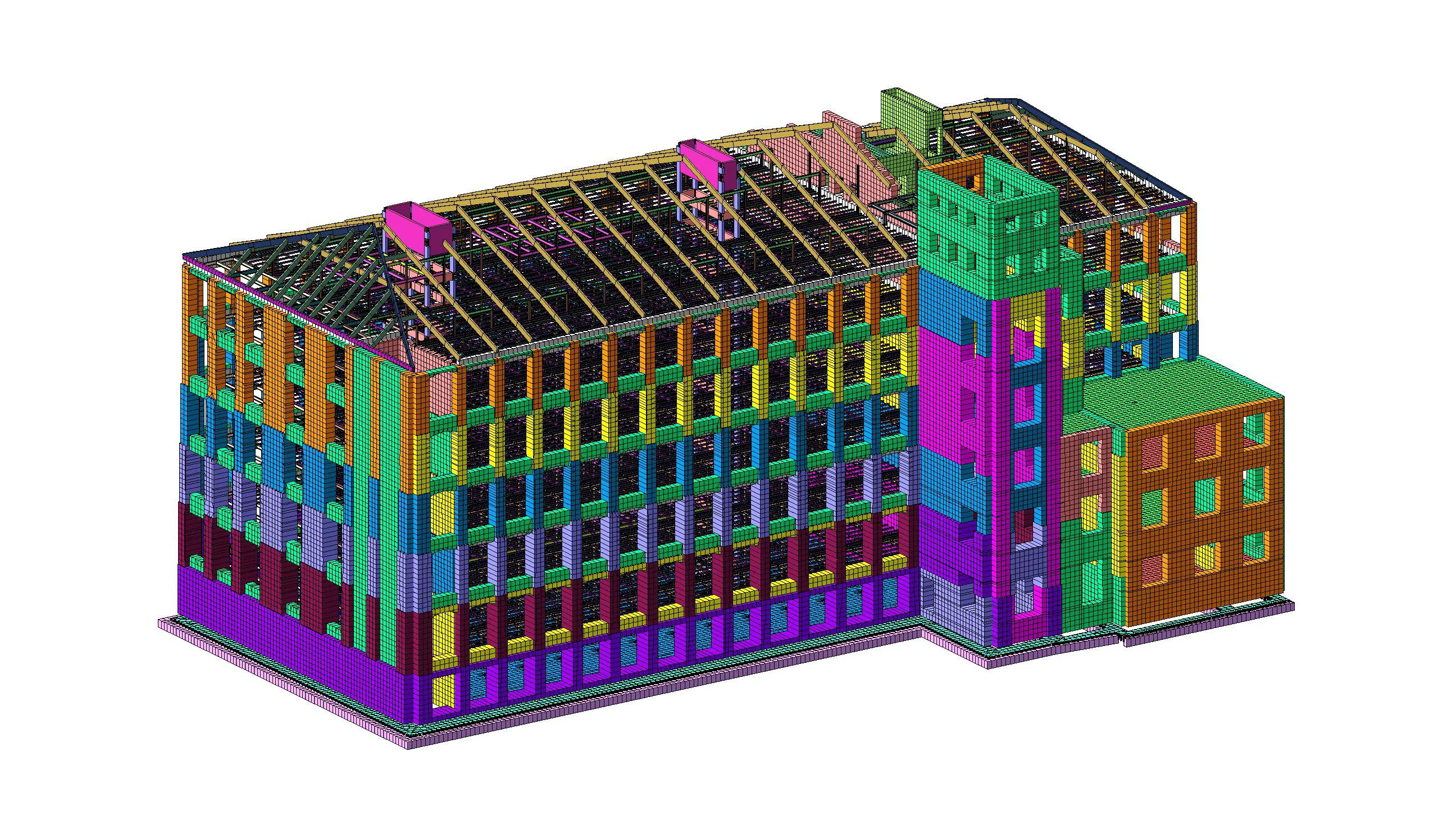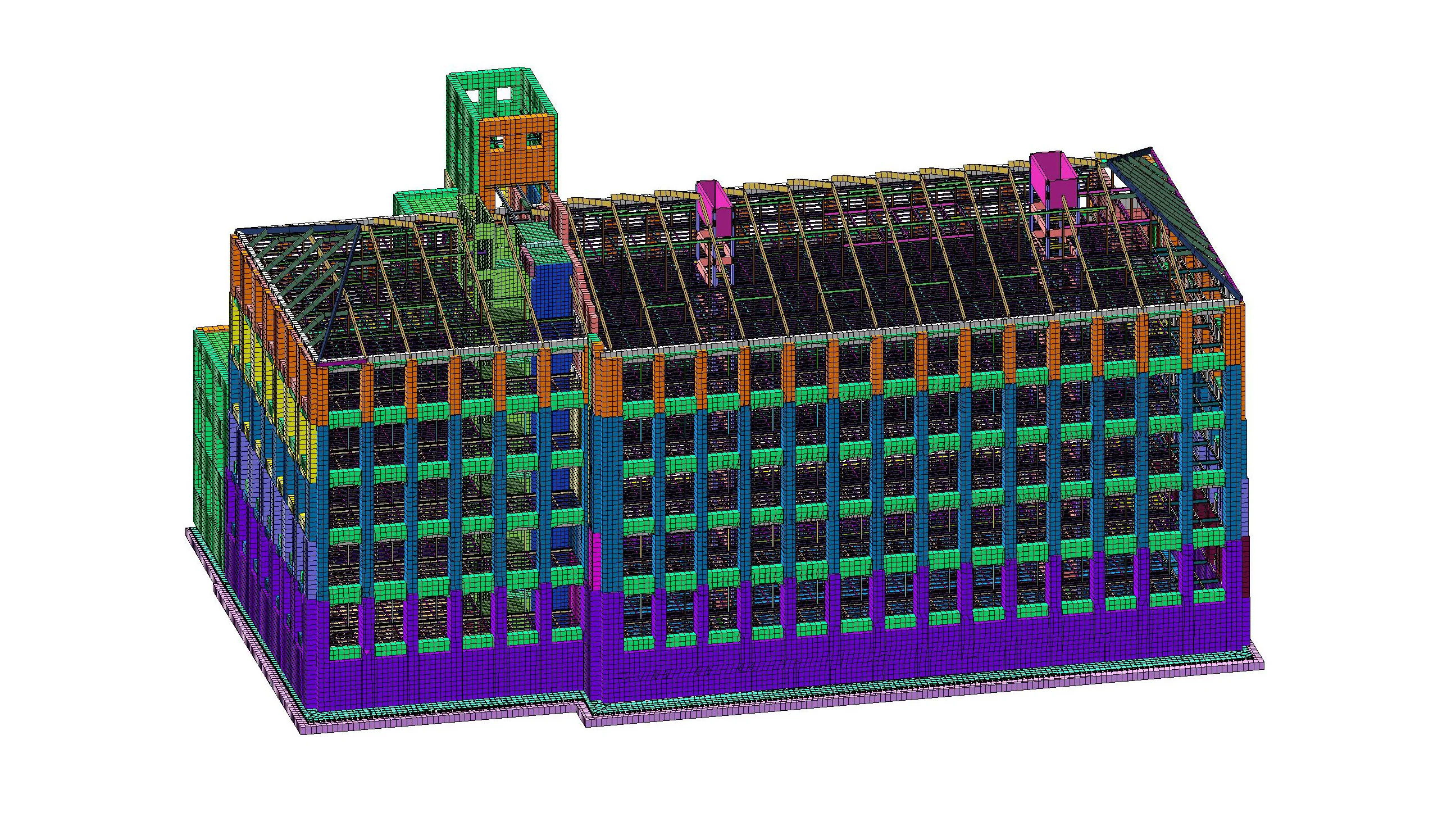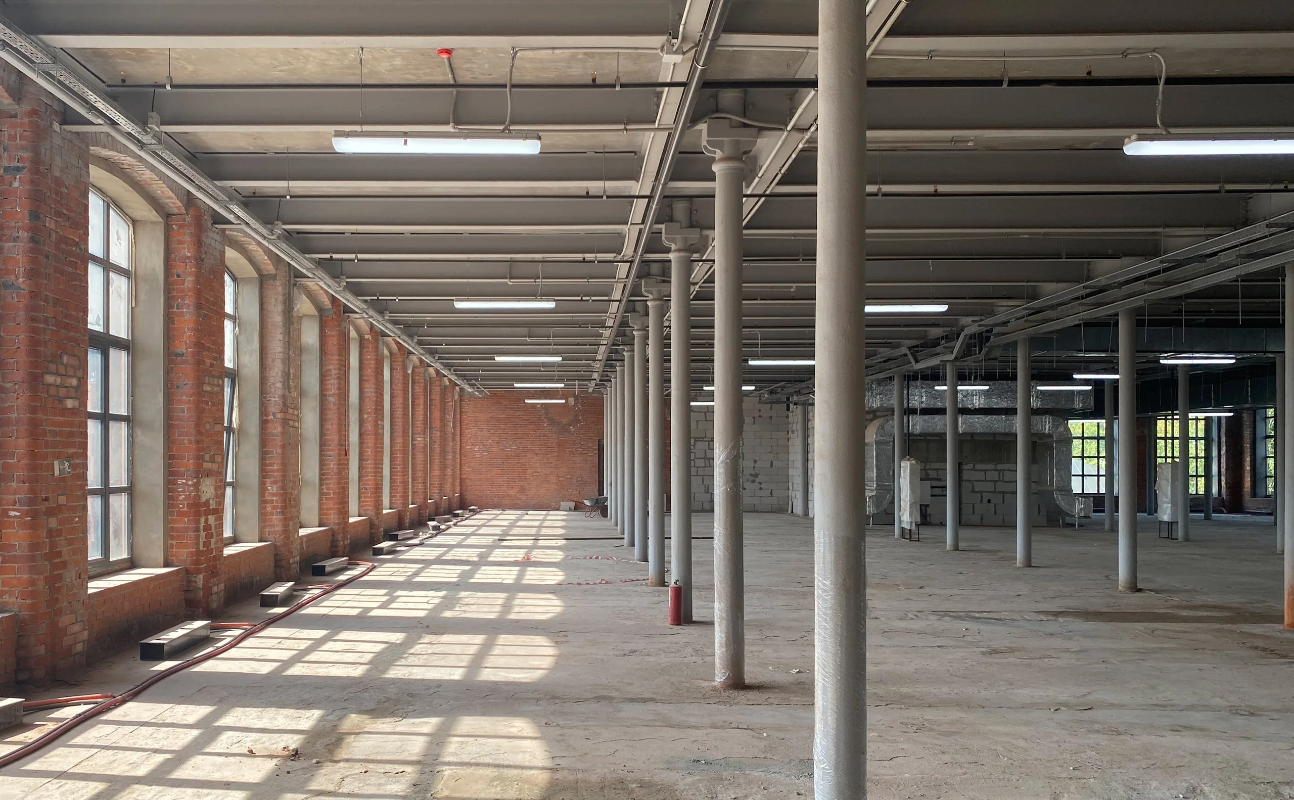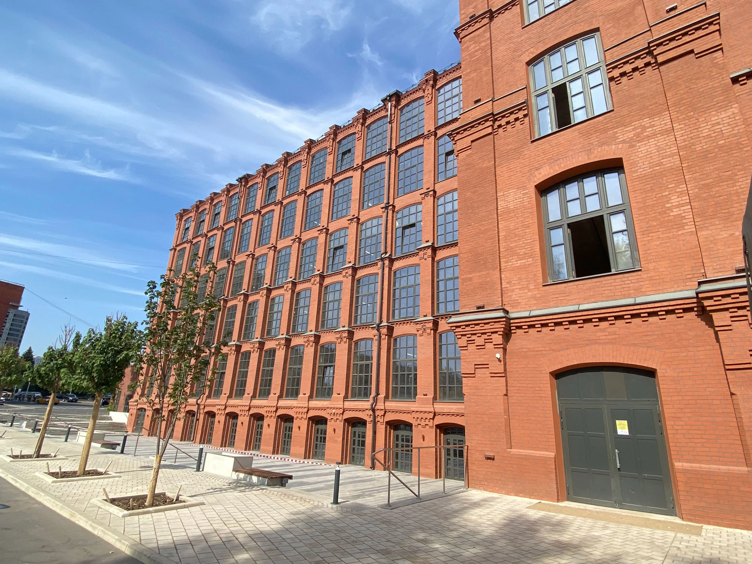 Пятиэтажное с подвалом кирпичное прямоугольное в плане здание строения 5 прядильного корпуса расположено по красной линии улицы Рочдельская и состоит из двух корпусов с лестничной башней, стоящей на стыке двух основных объемов. Здание было выстроено в 1897г. арх. А. Н. Милюковым. Фасады здания решены в формах эклектики кон. XIX в. в «кирпичном стиле», характерном для промышленной архитектуры 1890-х годов, ритмически расчленены вертикальными плоскими лопатками по всей высоте здания с